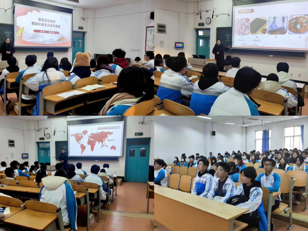 随后,翟幸娟老师以“坚定文化自信,建设文化强国”为主题,从何谓文化自信、为何坚定文化自信、如何坚定文化自信三方面出发,以互动形式再次调动了团员青年们的学习积极性,通过图片和视频等形式讲解了众多中华优秀传统文化,使青年学生们学生懂得文化是民族生存和发展的重要力量,使团员青年们意识到,要以高度的文化自信推动建设中华民族现代文明,必须坚定不移走自己的路,坚定文化自信,赓续中华文脉,努力实现精神上的独立自主,把文化自信融入全民族的精神气质与文化品格中,乘着新时代的浩荡东风向强国建设、民族复兴的宏伟目标砥砺奋进。