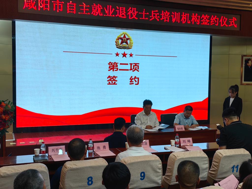 9月14日,咸阳市退役军人事务局在陕西国际商贸学院学术报告厅举行了咸阳市自主就业退役士兵培训机构签约仪式。我院继续教育与培训学院院长闫军受邀出席,咸阳市退役军人事务局局长刘峰、副局长程清志,各县市区退役军人事务局局长、市退役军人服务中心主任,六家培训机构负责人、部分退役士兵参加。