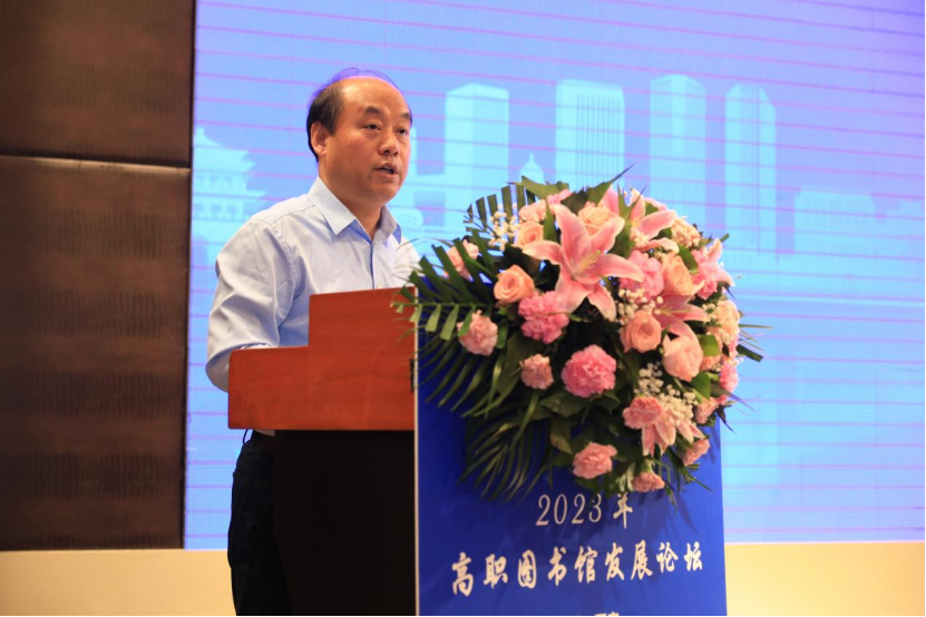 领导们的致辞正式拉开了2023年高职图书馆发展论坛的帷幕。本次论坛共分“院(校)长论坛:教育数字化转型背景下高职图书馆管理与服务创新”、“分主题报告:数字资源与智慧图书馆建设、数字素养与技能提升”“文化育人与阅读推广、图书馆科研评价与服务创新”三大主题单元。