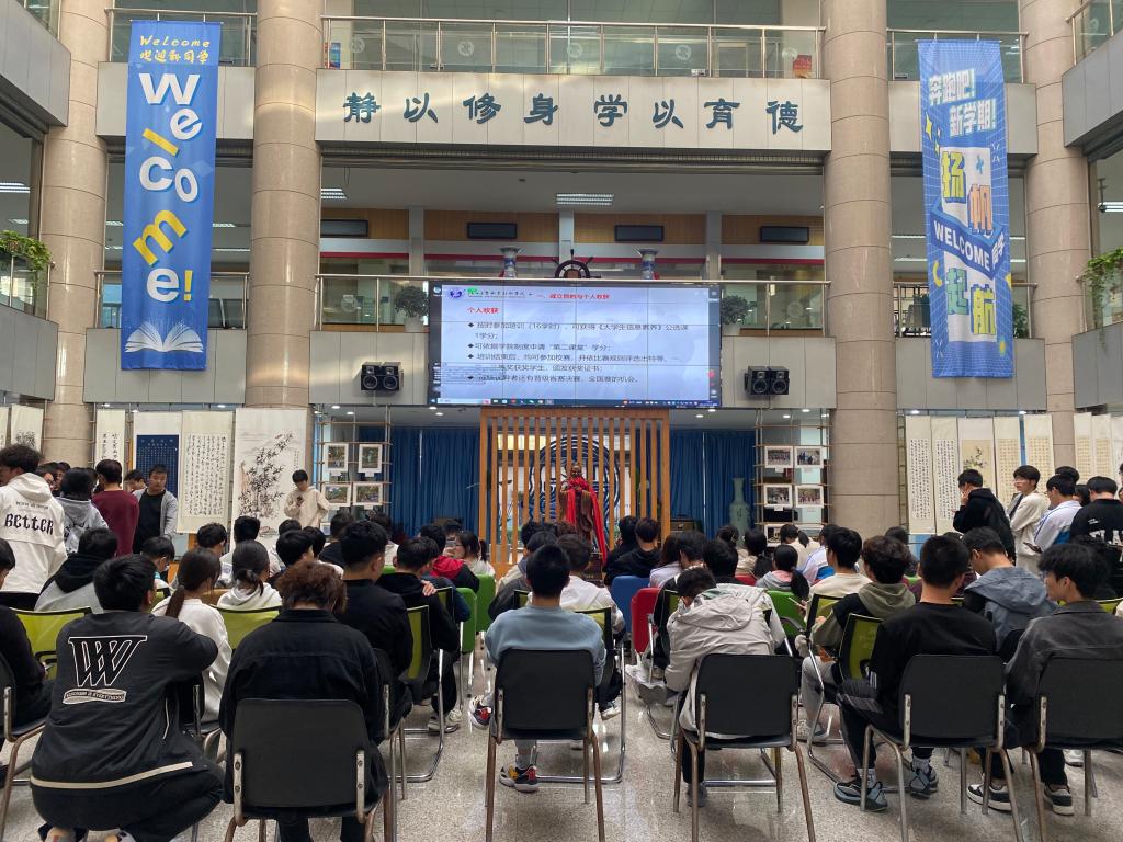 10月24日下午,“2023年大学生信息素养竞赛训练营”在经开校区图文信息中心正式拉开帷幕。本次启动会采取“线下会场+线上直播”的模式,在经开校区和渭城校区共同进行,300余名学生现场参加了启动仪式,1300余名学生通过公众号直播参加了启动仪式和首场培训。