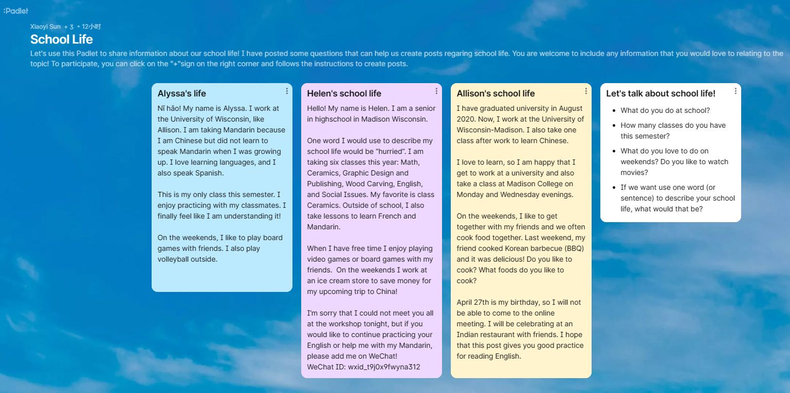 中美职业院校语言文化研习营交流项目是在陕西工业职业技术学院与麦迪逊区技术学院合作框架协议的基础上,两校创新形式,开展的线上学生语言文化交流项目。此次的第二期项目学生通过视频、文字、在线交流等形式,介绍自己以及本地文化风俗等,以促进两校学生互学对方国家语言,增进对彼此文化的了解,建立友谊,促进交流。