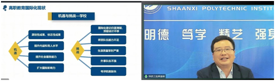 10月28日,陕西省教育厅教育对外开放评价改革试点项目评估会以视频会议的形式举行。我校作为项目试点院校,接受专业组评估。评估会上,国际教育学院院长秦景俊代表学校,从项目实施背景、主要任务、初步成效等方面介绍了我校“以‘双高’校建设为抓手,全面提升学校国际化”试点项目的基本情况,并从“责任落实情况”“...