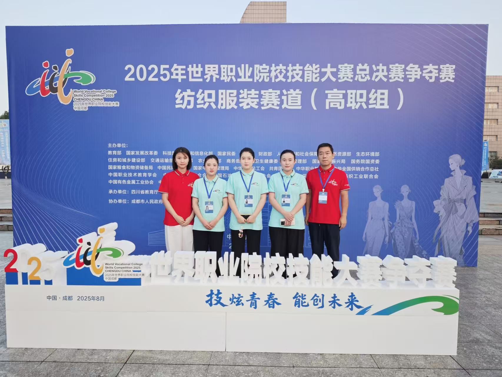 8月18日-22日,2025年世界职业院校技能大赛总决赛争夺赛 “纺织服装赛道”(高职组)在成都举办,我校代表队喜获银奖。本次大赛由教育部、国家发展改革委、科技部、工业和信息化部等部门联合主办。来自全国27个省、市、自治区的77支参赛队伍齐聚一堂,同台竞技展示风采。我校服装参赛团队直面挑战、全力备战。团队精准对...
