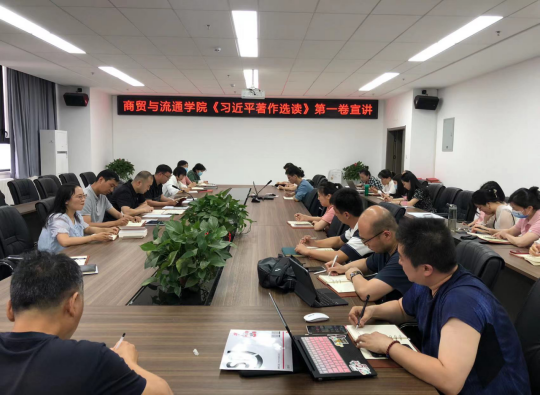 为深入开展学习贯彻习近平新时代中国特色社会主义思想主题教育,根据学校关于开展《习近平著作选读》第一卷、第二卷宣讲工作的通知要求,6月12日下午,商贸与流通学院党总支在经开校区崇理楼六楼会议室开展《习近平著作选读》第一卷、第二卷宣讲工作,会议由商贸与流通学院党总支副书记侯涛主持,全体教师党员参加了会议...