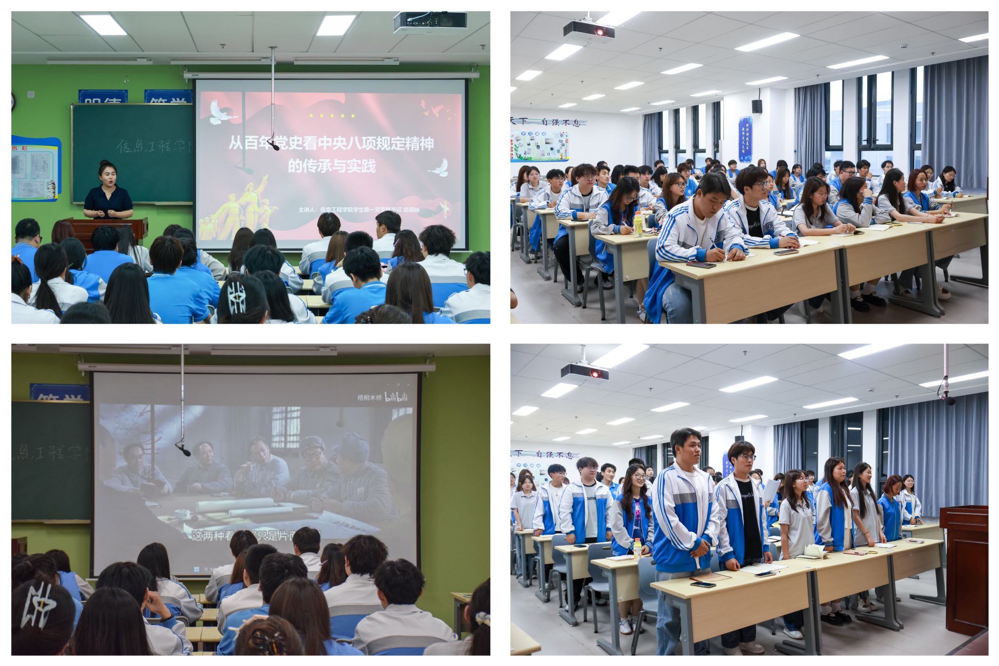 为持续深入贯彻中央八项规定精神学习教育,强化学生党员纪律规矩意识,为青年学子系紧“作风扣”。6月5日,信息学院学生第一党支部书记武丽丽以《从百年党史看中央八项规定精神的传承与实践》为题,在崇理楼C-402讲授专题党课。学生党员、发展对象及入党积极分子60余人参加。溯作风之源:从党史长卷中解码纪律基因党课开...