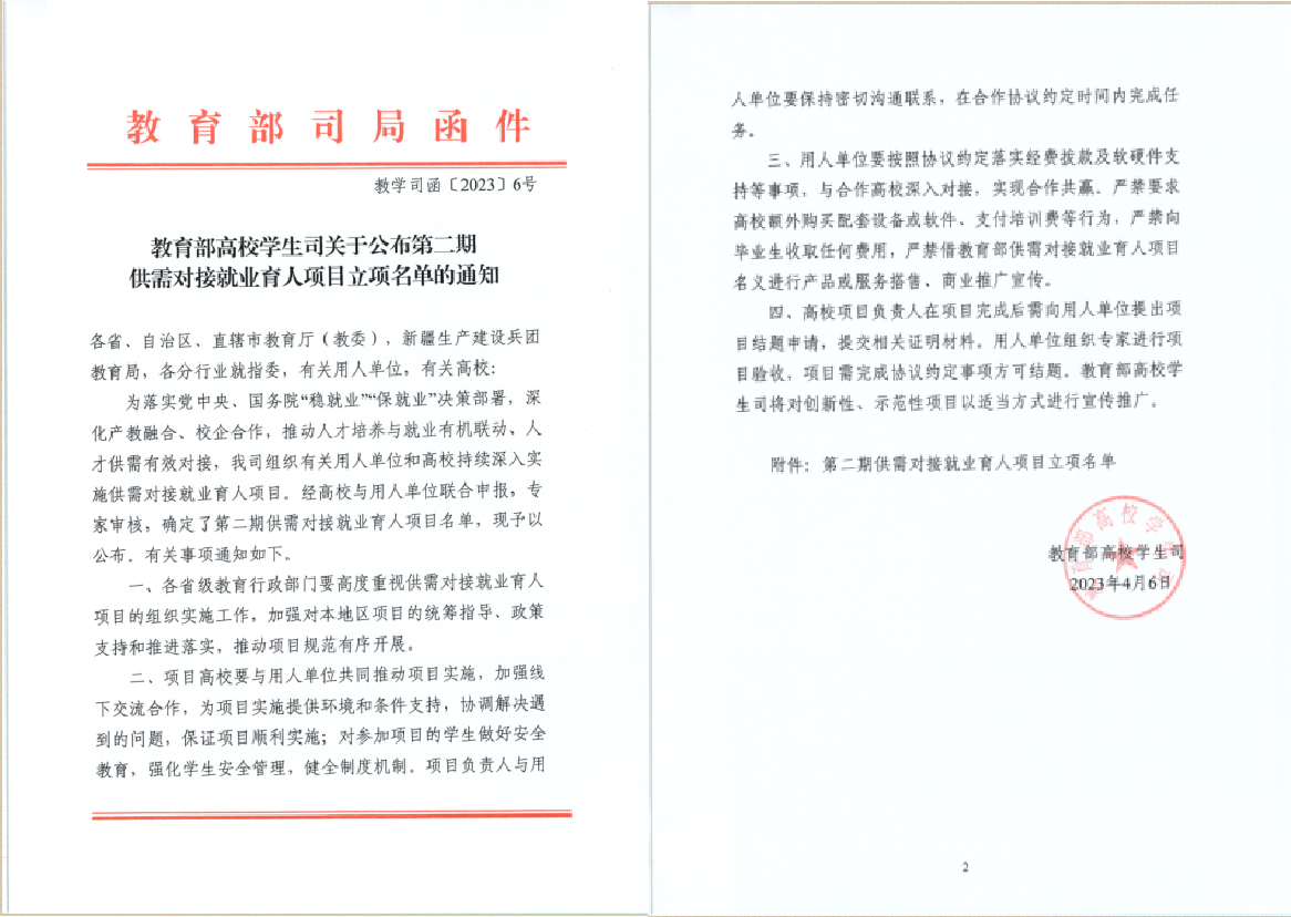 4月6日,教育部公布了第二期供需对接就业育人项目立项名单,我校10个二级学院联合企业申报的17个项目全部获批立项。项目申报中,校企合作处精心组织、强化过程指导,在合作项目筛选、合作内容确定、申报书及合作协议撰写等方面,校企合作处全程跟进、全方位指导,为项目成功立项提供了精准的帮扶。后续,学校将与合作企...